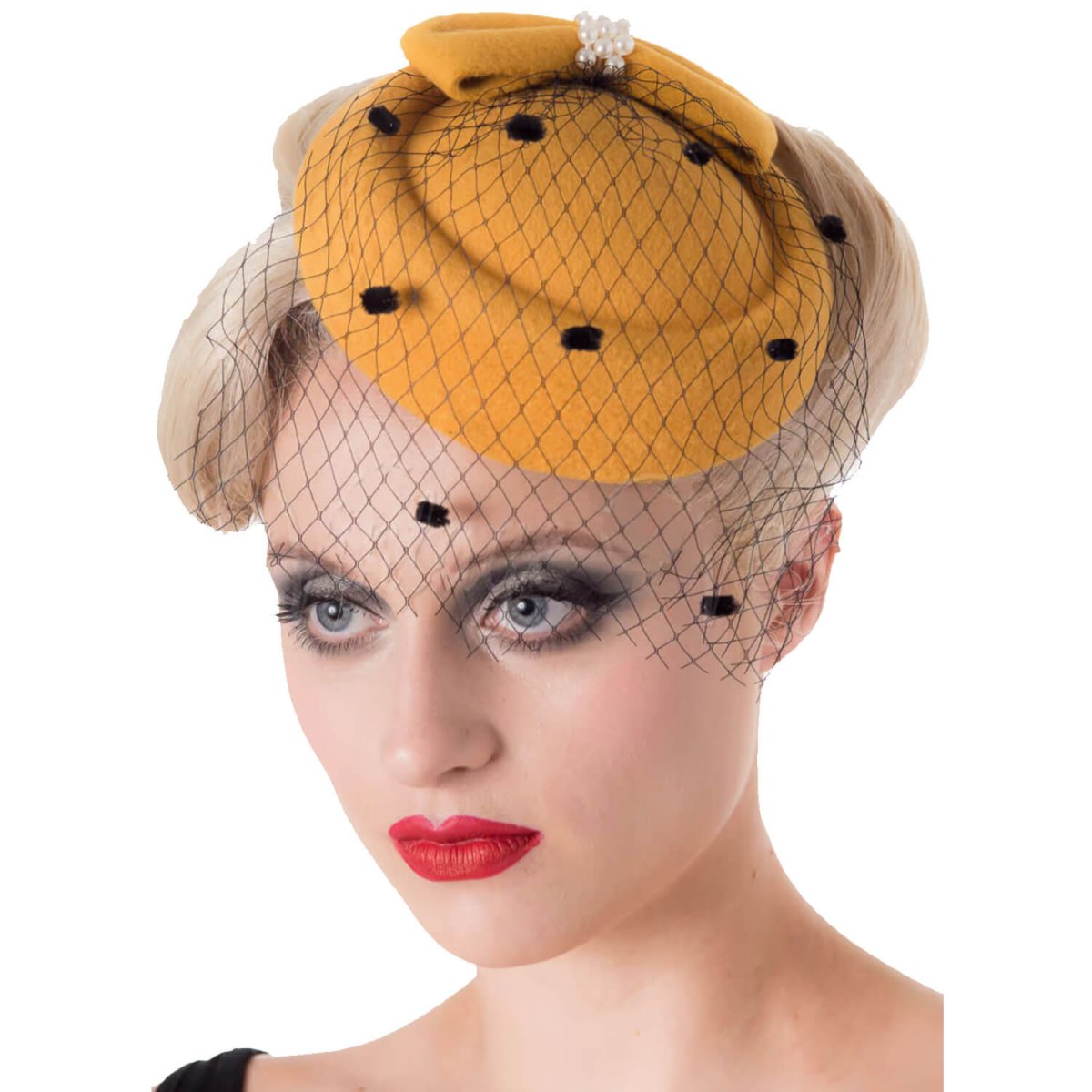 Den perfekte hatten til ditt 1940/50-talls antrekk. Hatten har et nett lite slør, en blomsterdetalj samt en liten klips for å feste hatten i håret.