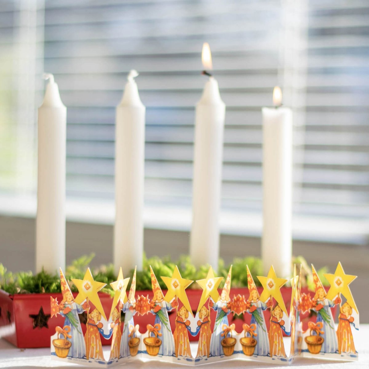 Skap nostalgisk og stemningsfull jul med denne sjarmerende mini papirrekken med stjernegutt og luciaterne. Et klassisk gammeldags julepynt som minner om tradisjonelle Lucia-feiringer og julen i gamle dager.