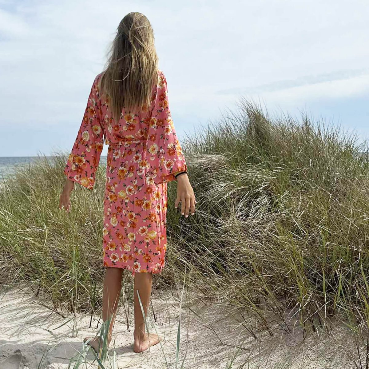 Kimono Badekåpe - Rosa blomster fra Poppins Clothing