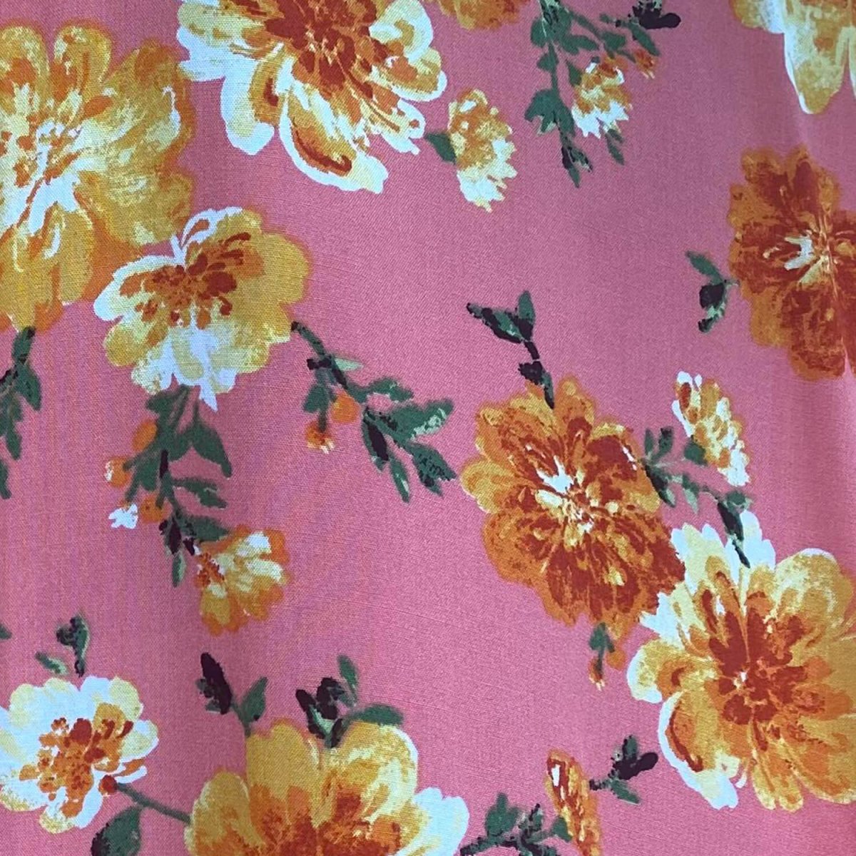 Materiale: 100% bomull. Farge: Rosa med blomstermønster.
